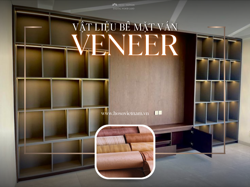 4) Veneer – vân gỗ thật, cảm giác ấm và sang, hợp cho mảng nhấn