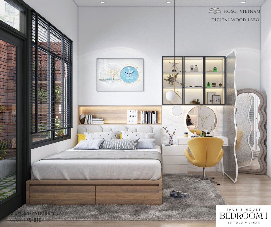 Một phòng ngủ đúng nghĩa là nơi bạn muốn quay về. Không cần quá lớn, không cần quá nhiều đồ, chỉ cần đủ yên tĩnh – đủ tiện nghi – đủ ấm áp, để mỗi ngày trôi qua đều có một điểm dừng dễ chịu. Đó cũng chính là cách HOSO định nghĩa phòng ngủ cho vợ chồng trẻ tại Thuy’s House.